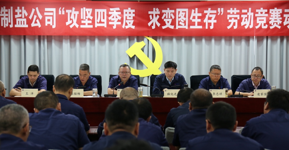 10月10日上午,金橋制鹽公司召開“攻堅四季度、圖變求生存”勞動競賽動員大會。公司領導班子成員、全體管理人員和生產一線職工代表參加了會議。公司黨委副書記、紀委書記、工會主席張銘楊主持會議。公司黨委副書記、總經(jīng)理薛化光通報了前三季度生產經(jīng)營情況,分析了存在的困難和問題,并部署安排了下半年重點工作,指出要緊扣“攻堅四季度,圖變求生存”主線,以“市場破局、管理革新、嚴守底線”三大攻堅行動,全力沖刺全年目標任務。公司黨委書記、董事長田磊作動員講話,強調指出,一要認清形勢,直面危機,以背水一戰(zhàn)的決心迎接大考。既要看清外部的“寒風凜冽”,也要摸清自身的“病灶痼疾”,更要在危機中尋找到那縷可貴的“希望之光”。二要精準施策,聚焦關鍵,以刮骨療毒的勇氣攻堅克難。聚焦“減虧增盈”這個核心目標,實施一系列精準、有力、可操作的硬核舉措。既要緊急“輸血止血”,穩(wěn)住生命體征;更要強力“祛邪扶正”,增強自身機能。三要強化執(zhí)行,改進作風,以抓鐵有痕的韌勁確保勝利。要堅決摒棄“等、靠、要”的思想,走出辦公室,沉到車間去、跑到市場上去。要做到“問題在一線發(fā)現(xiàn),決策在一線形成,難題在一線解決,成效在一線檢驗”。會上,副總經(jīng)理凌...